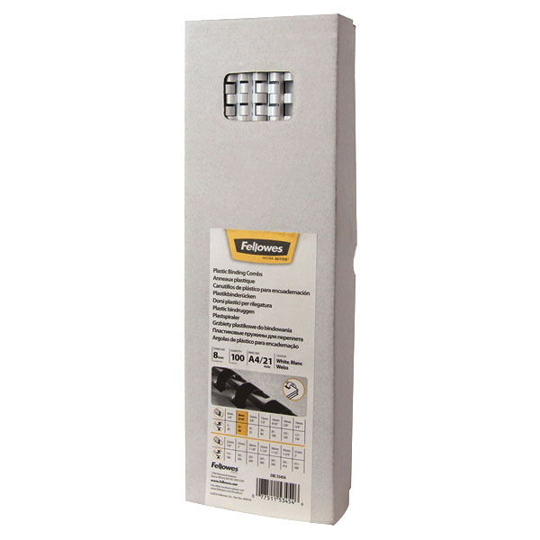 —Пружина пластиковая Fellowes, 8 мм. Цвет: белый, 100 шт, шт
