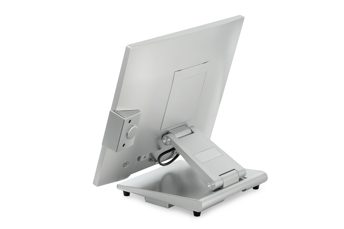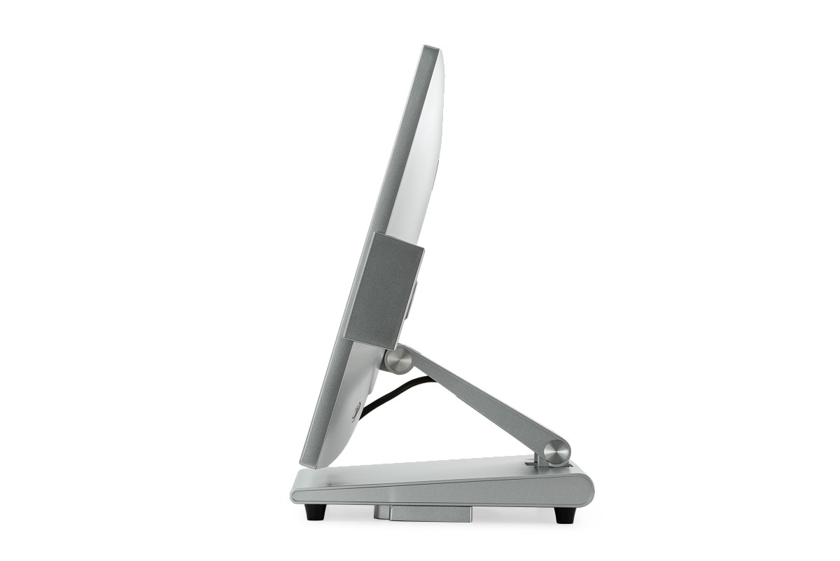Моноблок работает бесшумно, что важно для комфортной и внимательной работы кассиров и официантов. Гибкая эргономичная подставка позволяет наклонять и поворачивать экран, чтобы выставить его в максимально удобное для работы положение. При необходимости, моноблок возможно закрепить на стене.