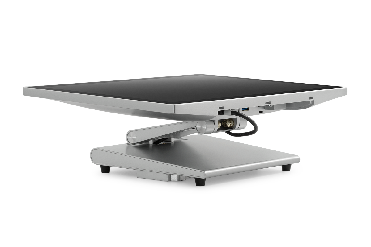 Моноблок работает бесшумно, что важно для комфортной и внимательной работы кассиров и официантов. Гибкая эргономичная подставка позволяет наклонять и поворачивать экран, чтобы выставить его в максимально удобное для работы положение. При необходимости, моноблок возможно закрепить на стене.