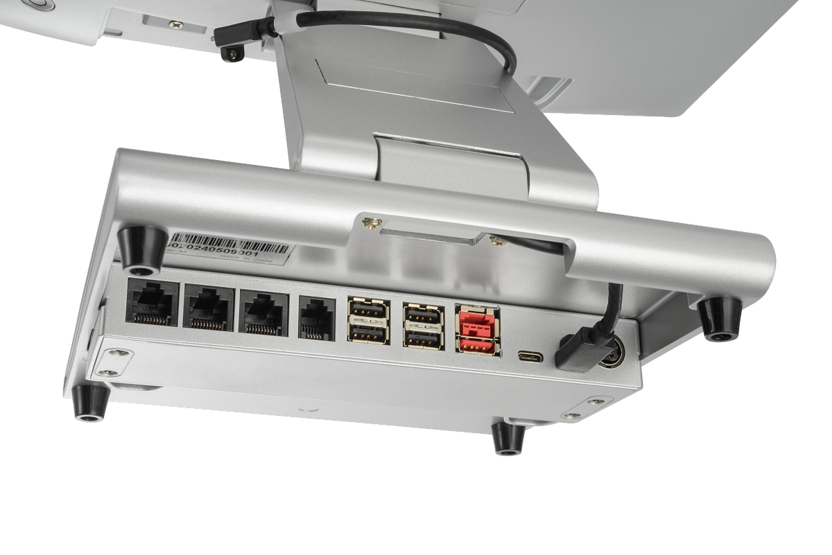 Моноблок работает бесшумно, что важно для комфортной и внимательной работы кассиров и официантов. Гибкая эргономичная подставка позволяет наклонять и поворачивать экран, чтобы выставить его в максимально удобное для работы положение. При необходимости, моноблок возможно закрепить на стене.